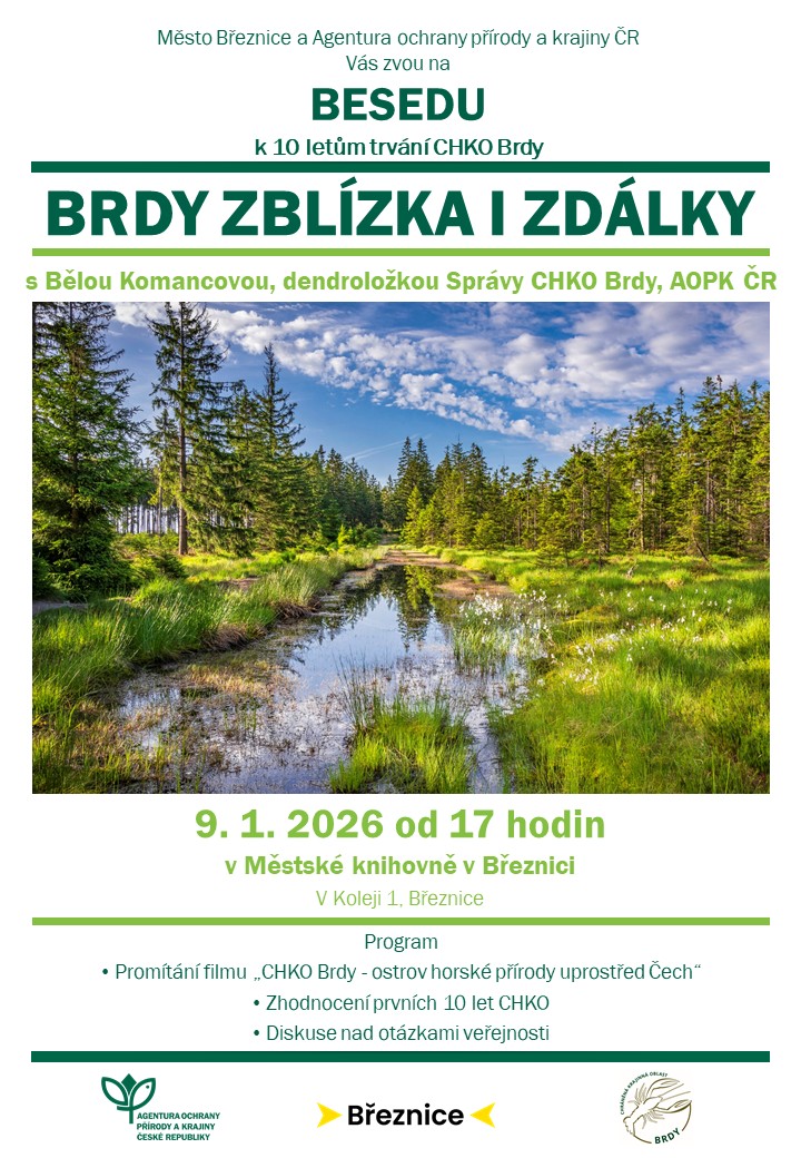 V roce 2026 slavíme 10 let od vyhlášení Chráněné krajinné oblasti Brdy. Jak se toto území za tu dobu změnilo? Co se v ochraně přírody podařilo? Přijďte si 9. ledna od 17 hodin do Městské knihovny Březnice pobesedovat s Bělou Komancovou, dendroložkou Správy CHKO Brdy.